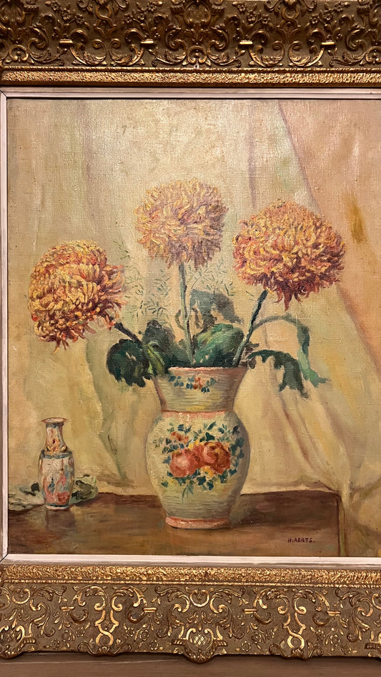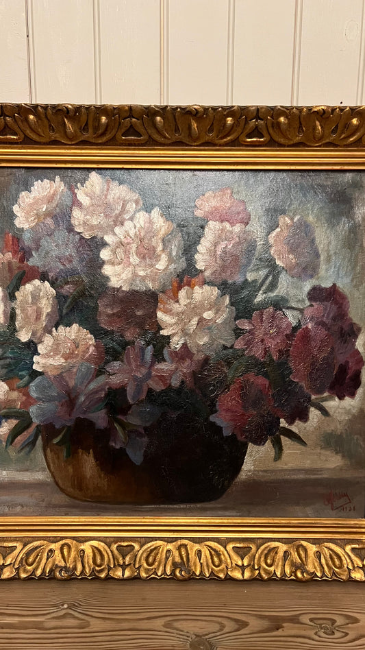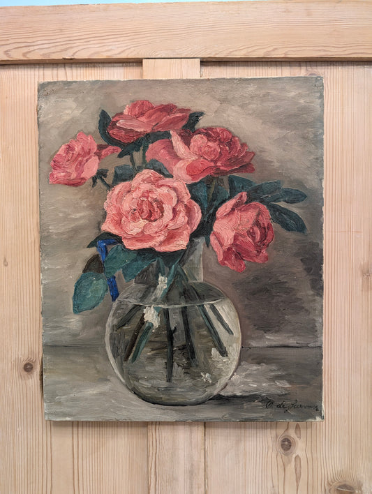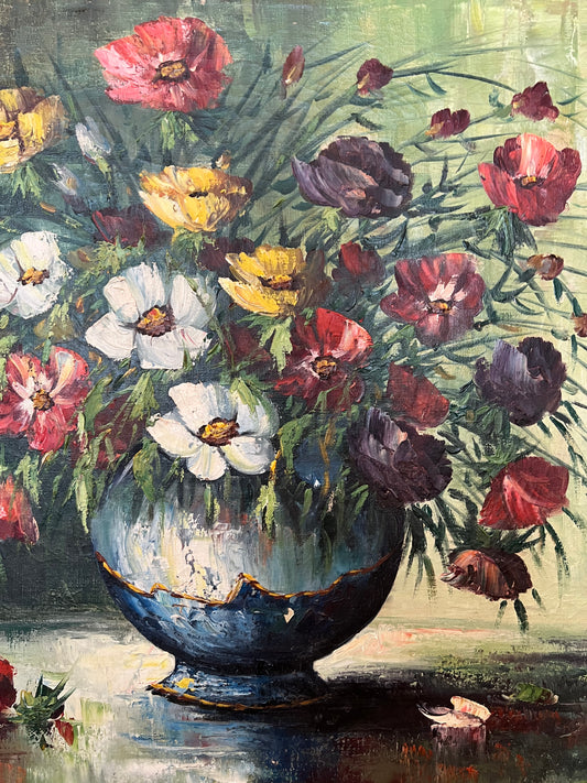 Oil on Canvas Dahlia Bouquet Pink/Red