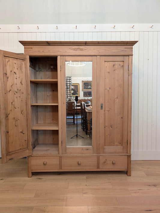 Mellow Pine Triple Door Wardrobe w/Mirror