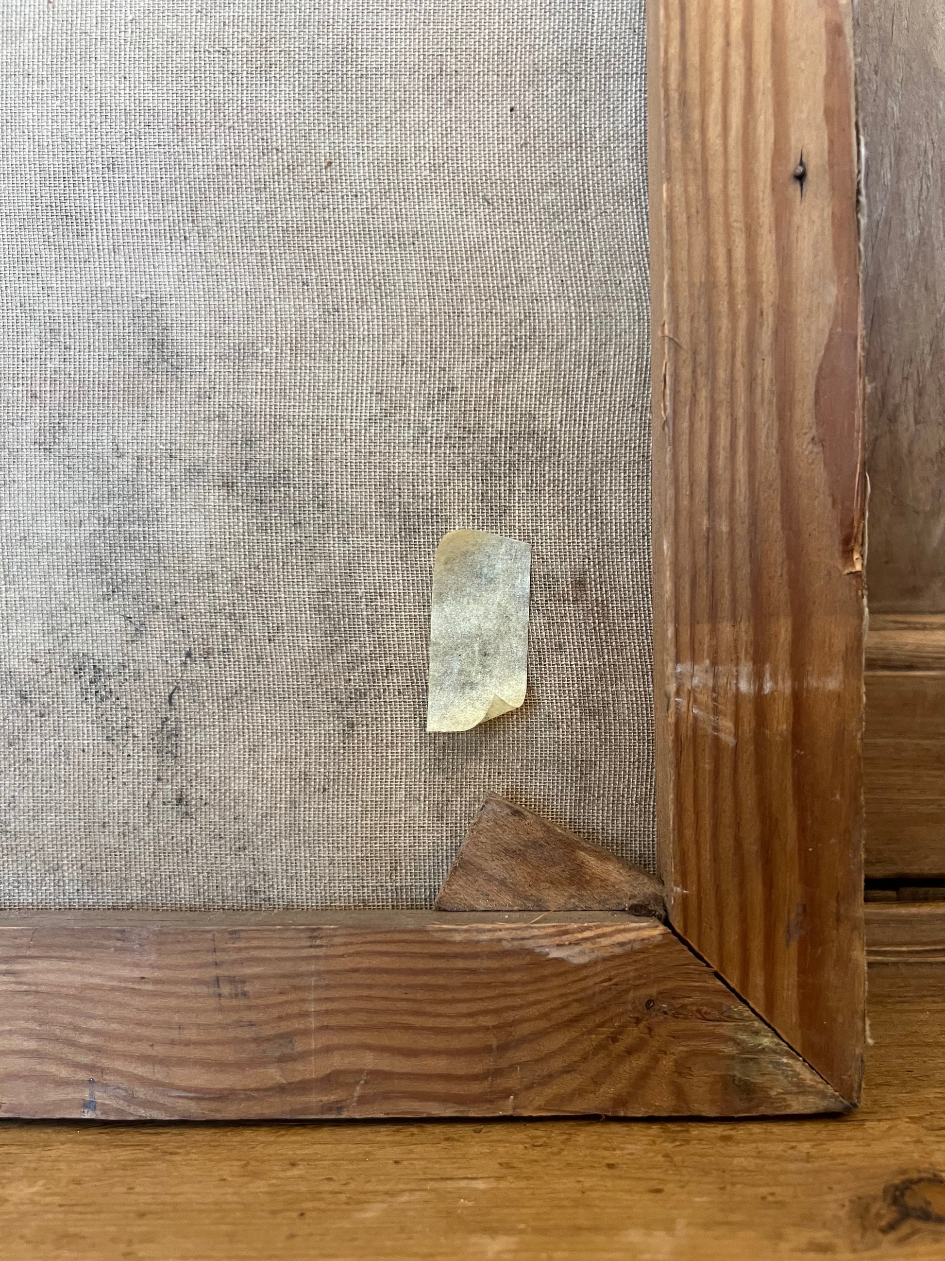 This impressionist painting is characterized by a dark, moody ambiance. The dark green background provides a stark contrast to the bright flowers. With heavy brushstrokes, accurate shadowing, and a "wet on wet" technique, it exemplifies the impressionist style. It is signed "Desmarets" in the bottom right corner. It does show minor damage, with some sections having been previously reinforced on the backing.