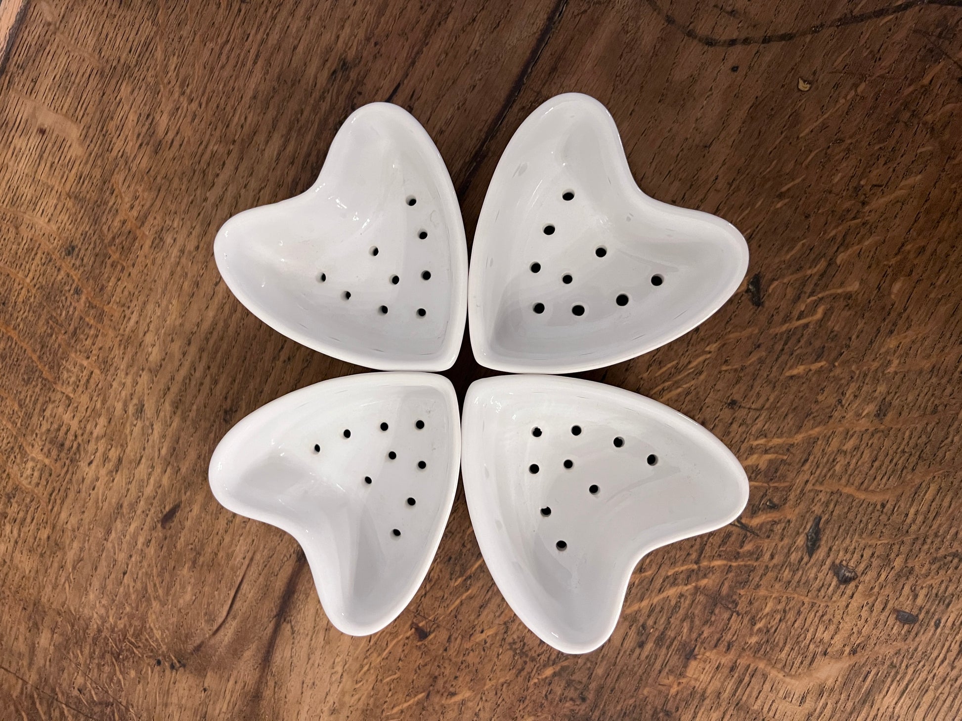 Found in Northern France, these ironstone cheese molds/strainers would have held Camembert and Neufchatel cheese in the shape of a heart.
