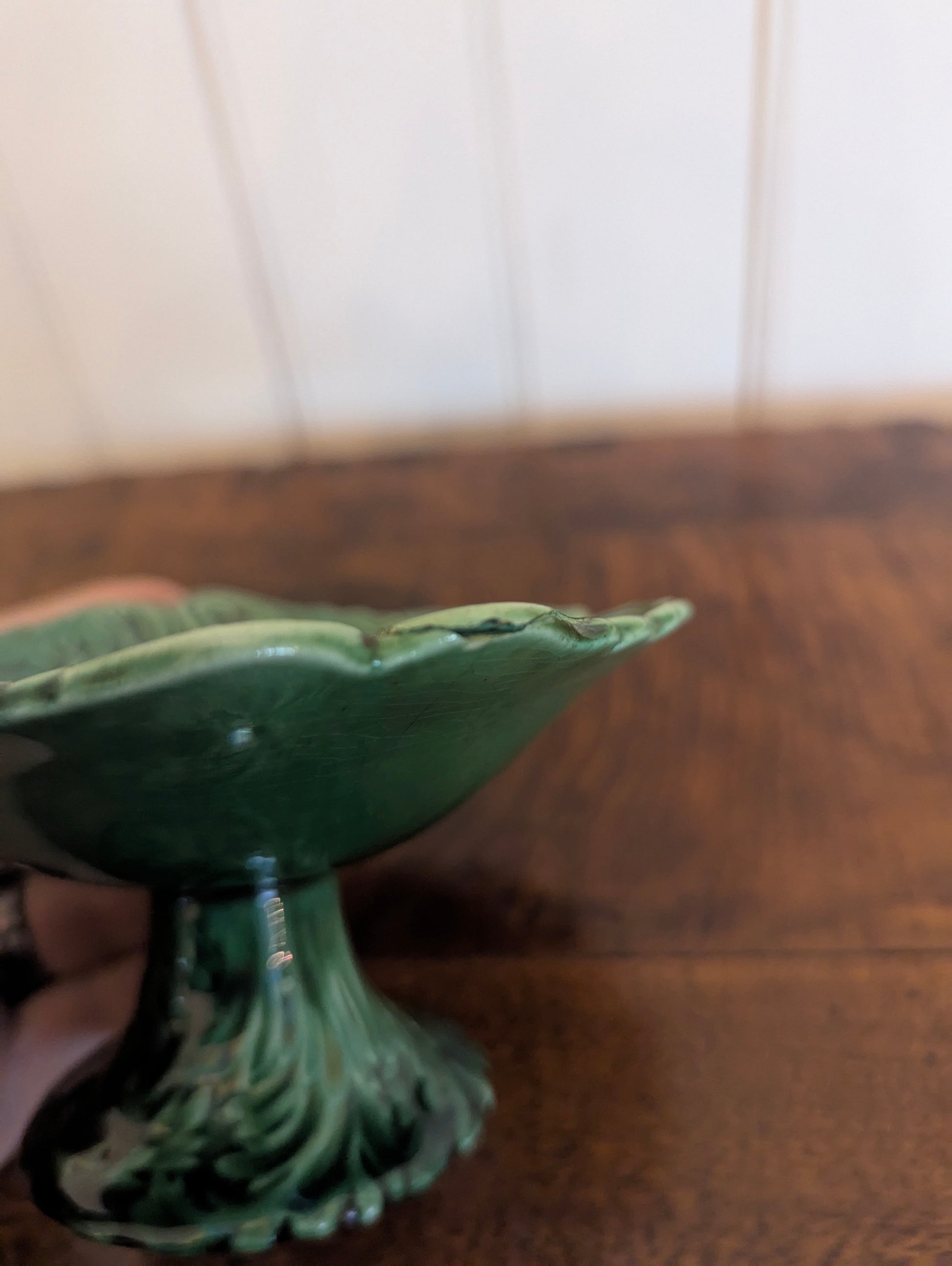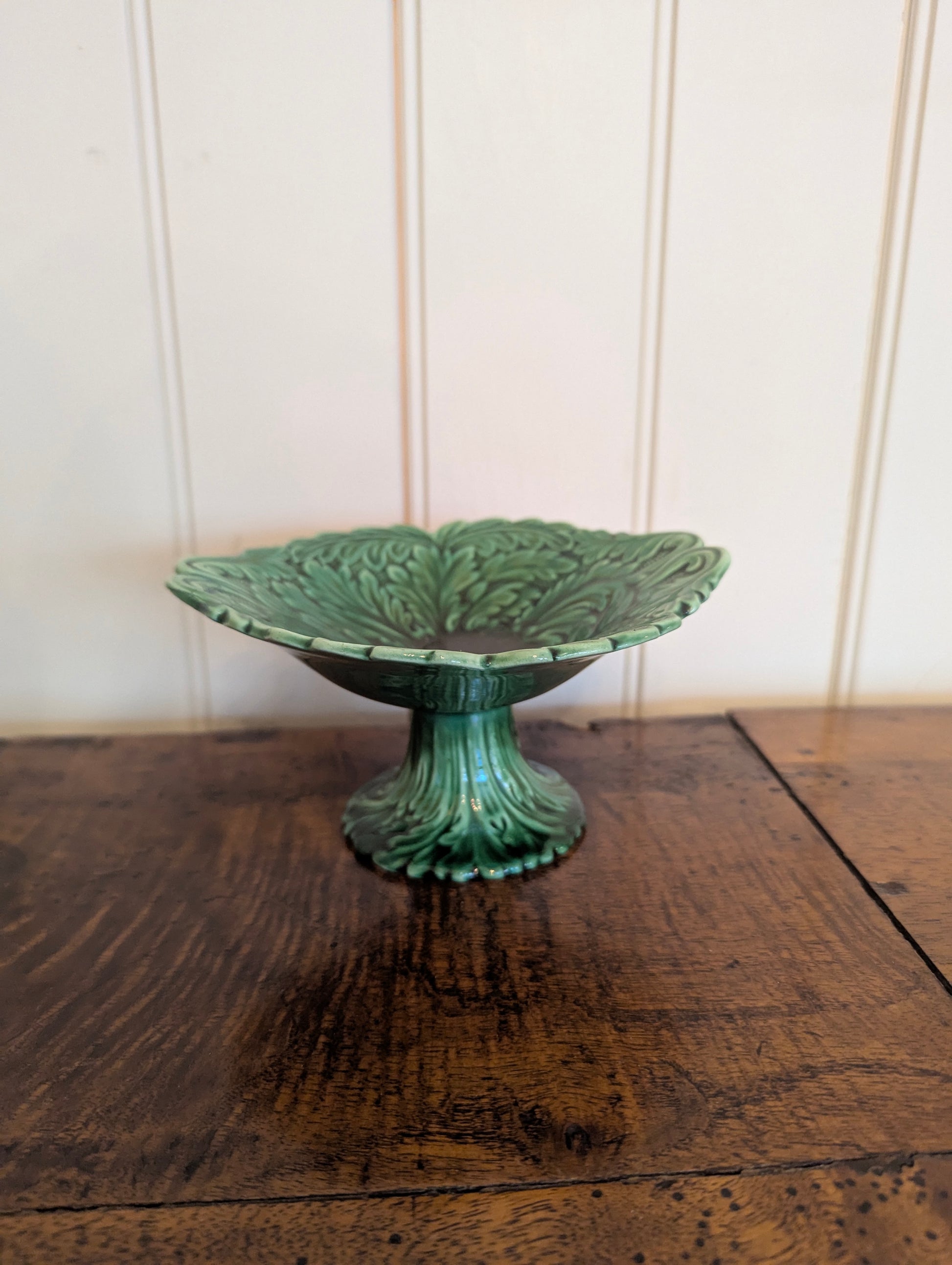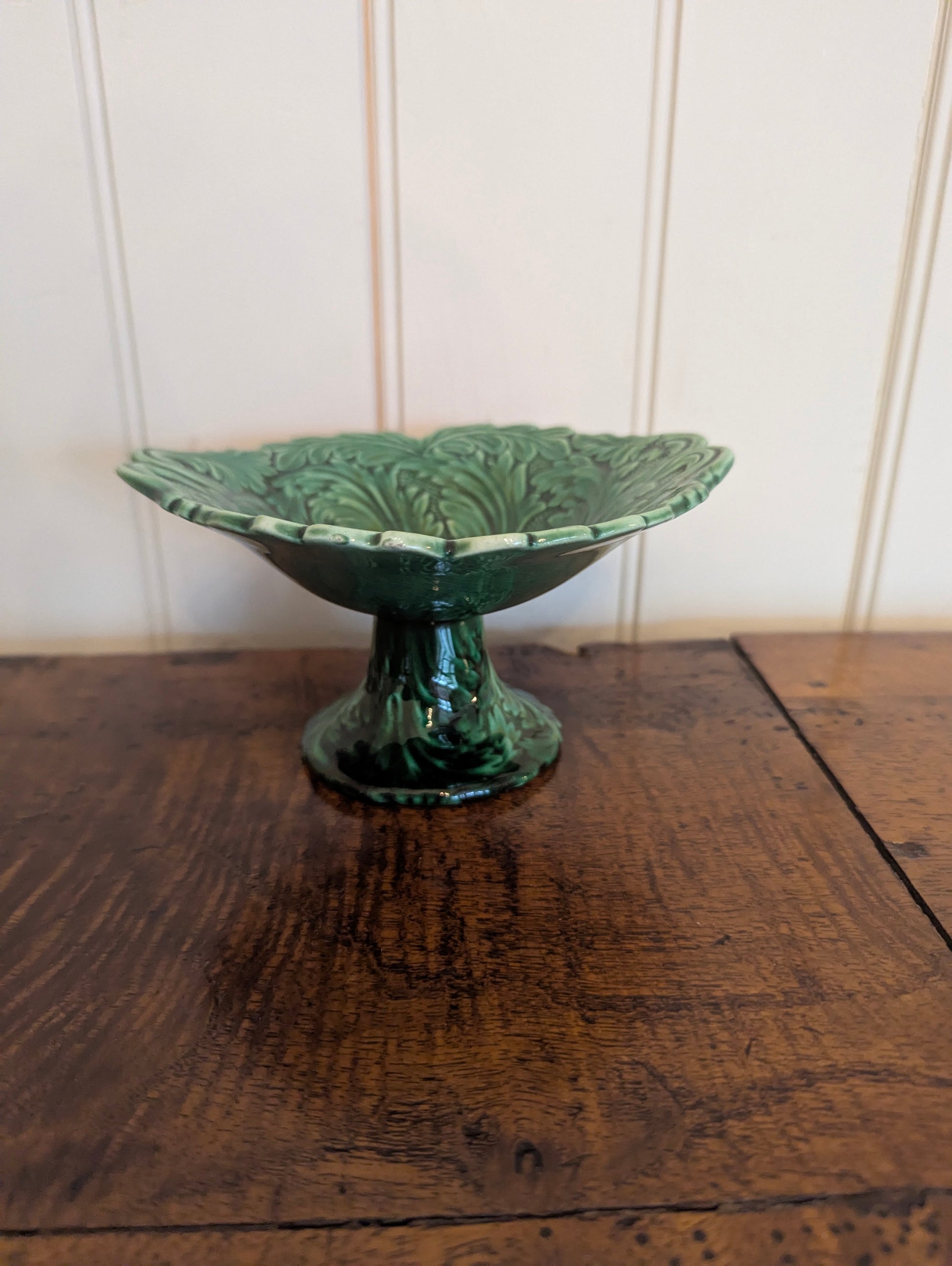 Small Green Majolica Pedestal Dish