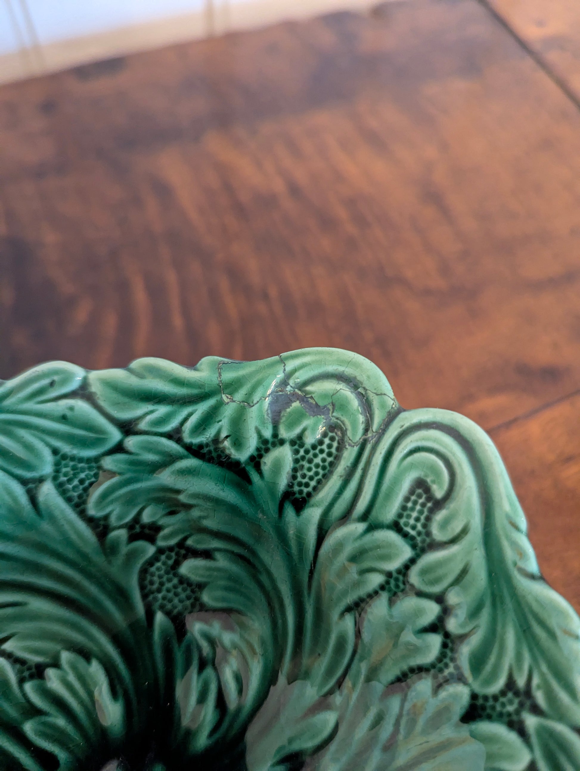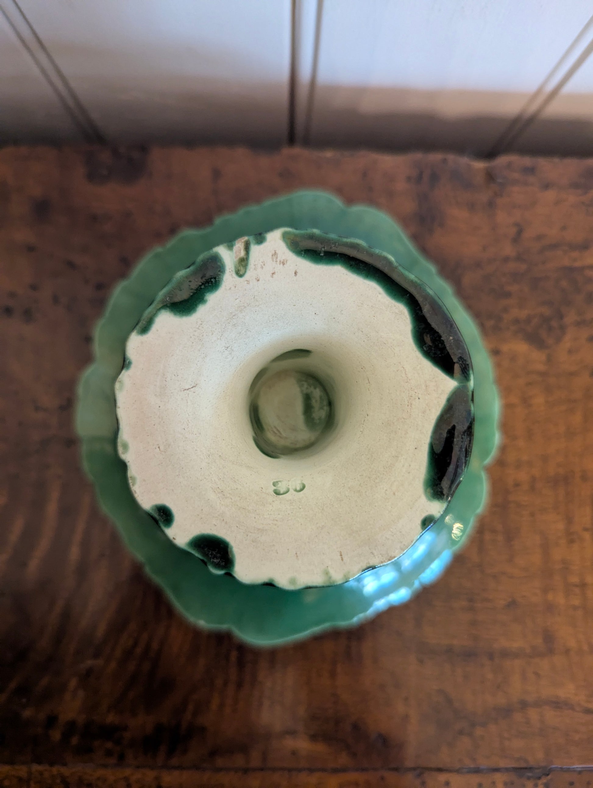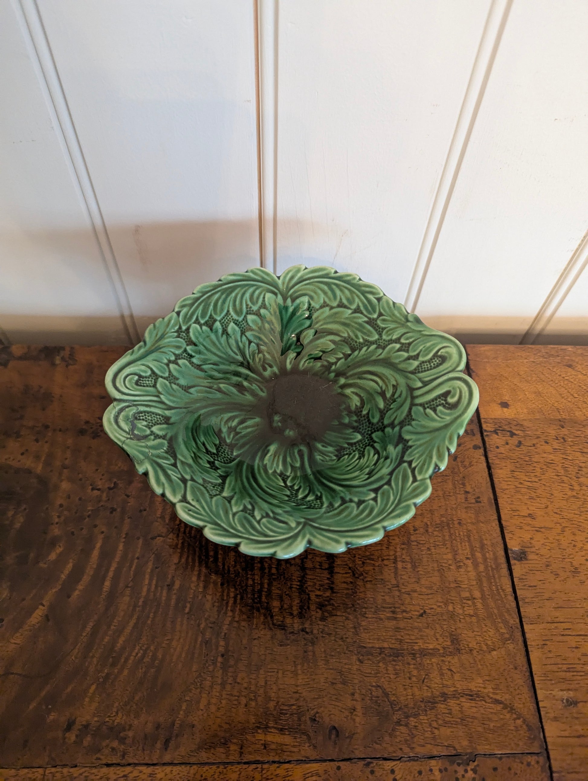 Small Green Majolica Pedestal Dish