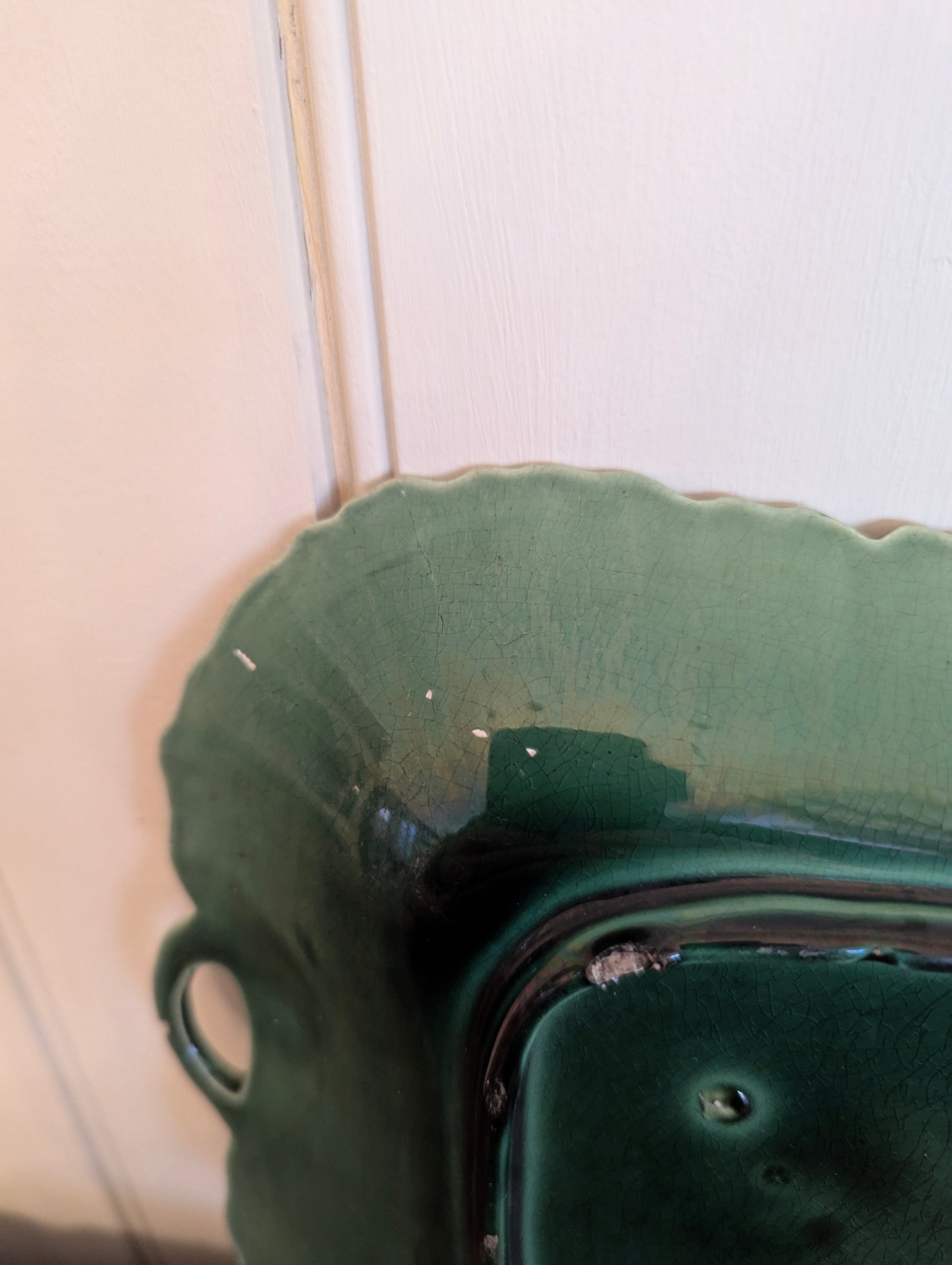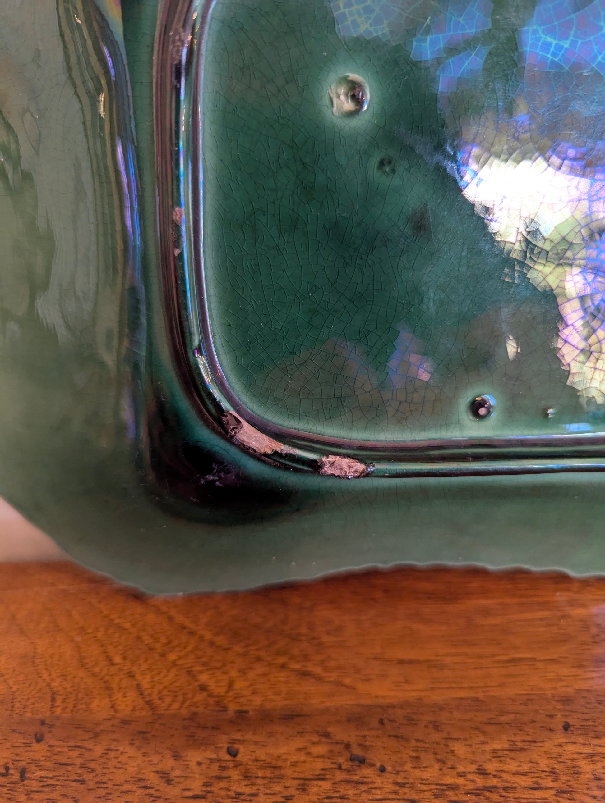 Condition: Good, no major cracks or chips. There are some minor chips on the base as shown. Please note the marks on the underside as part of the original glazing process (not a defect).