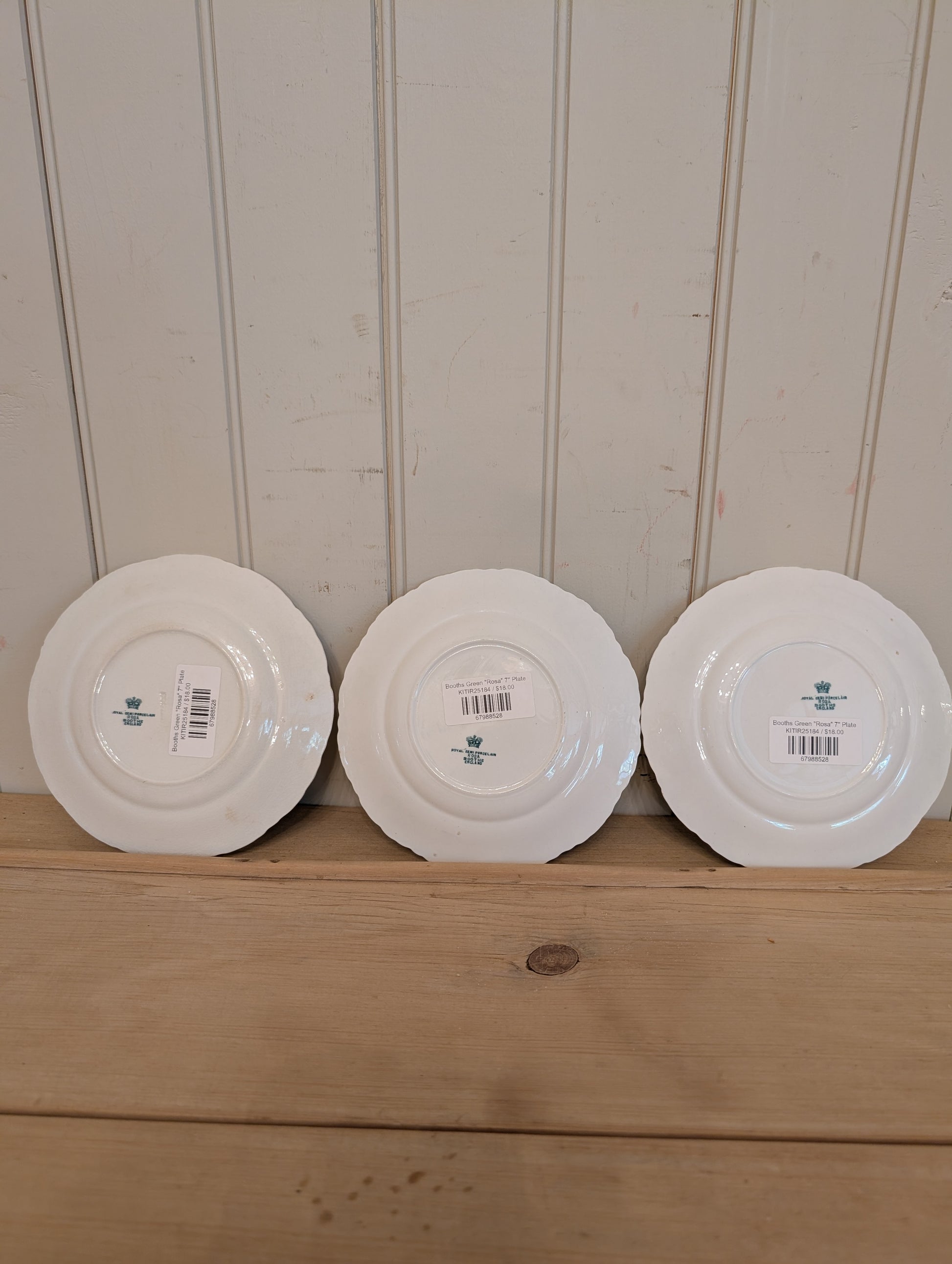 Sold individually, an English Cake plate in the "Rosa" pattern and green colorway.