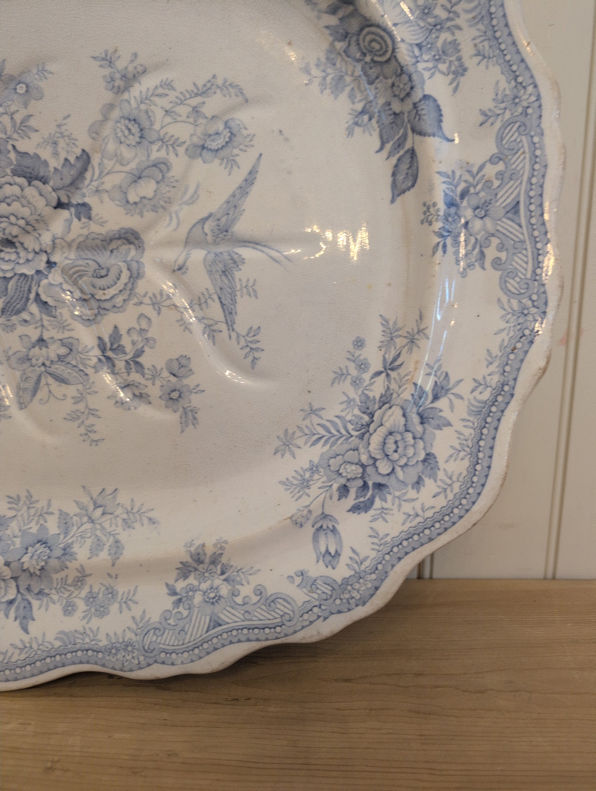 Original 19th C. Asiatic Pheasants scalloped transfer ware meat platter. Staining and crazing present, no major chips or cracks. Very large and heavy in person, rare collectors piece.