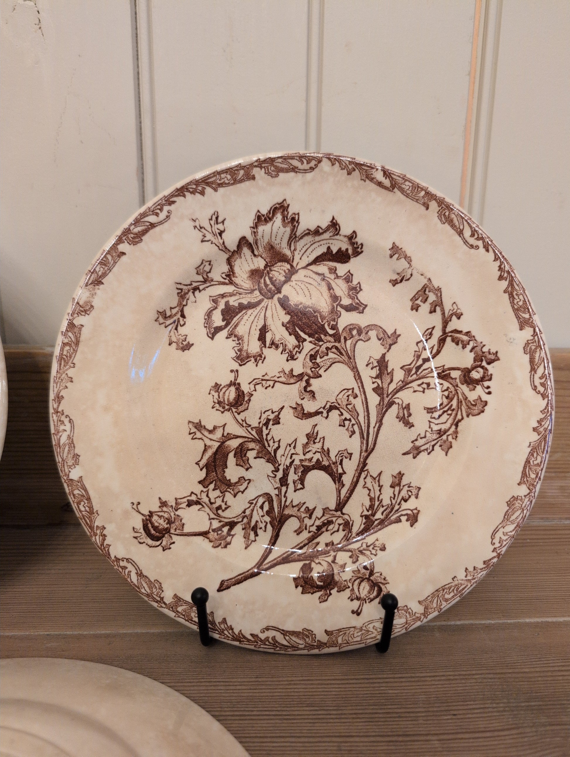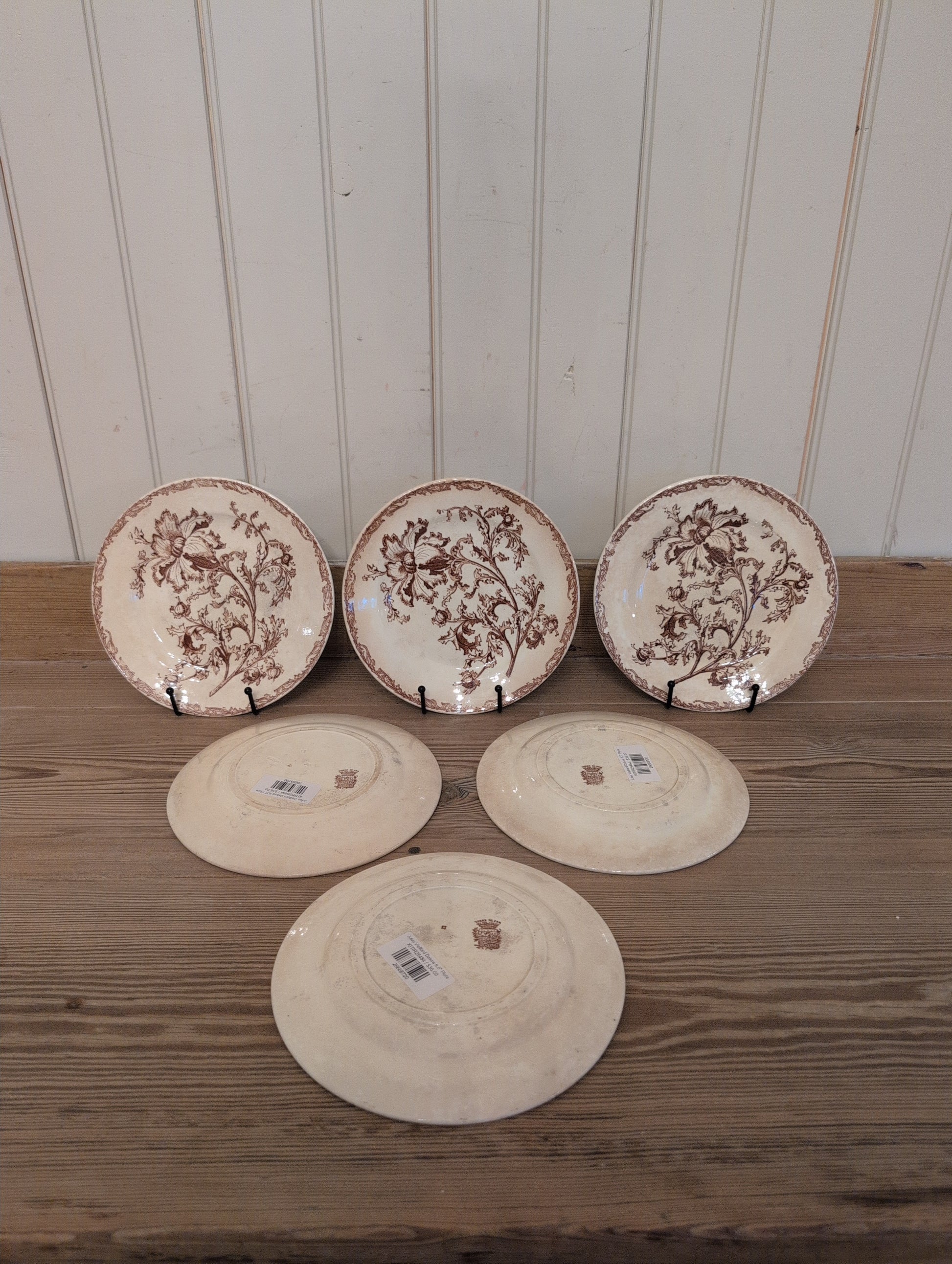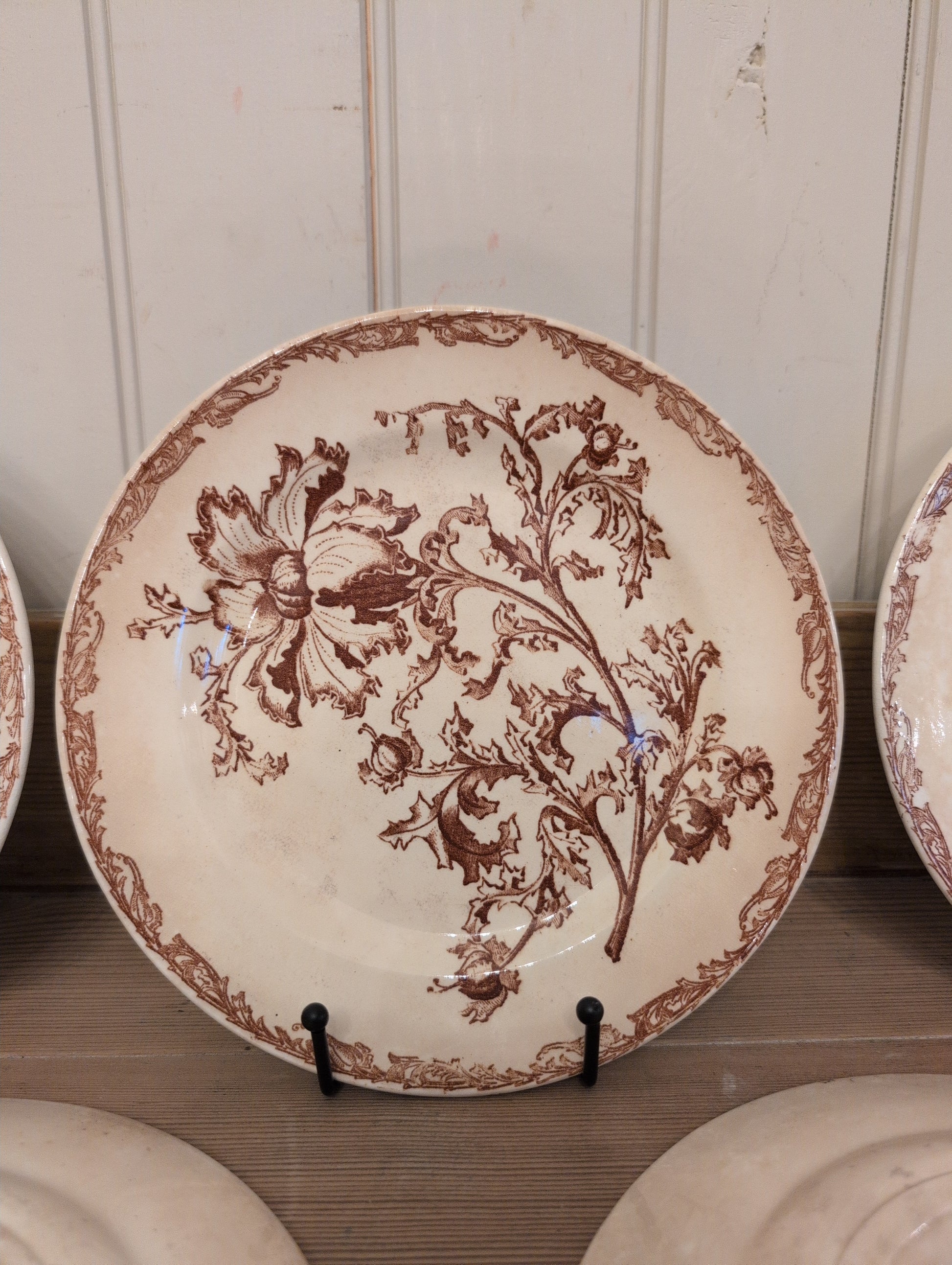 Theses brown transfer ware bowls are French in design, and date to the mid 1800's. There are 2 specific patterns in this design. Staining and crazing present, no major cracks or chips. Sold individually.