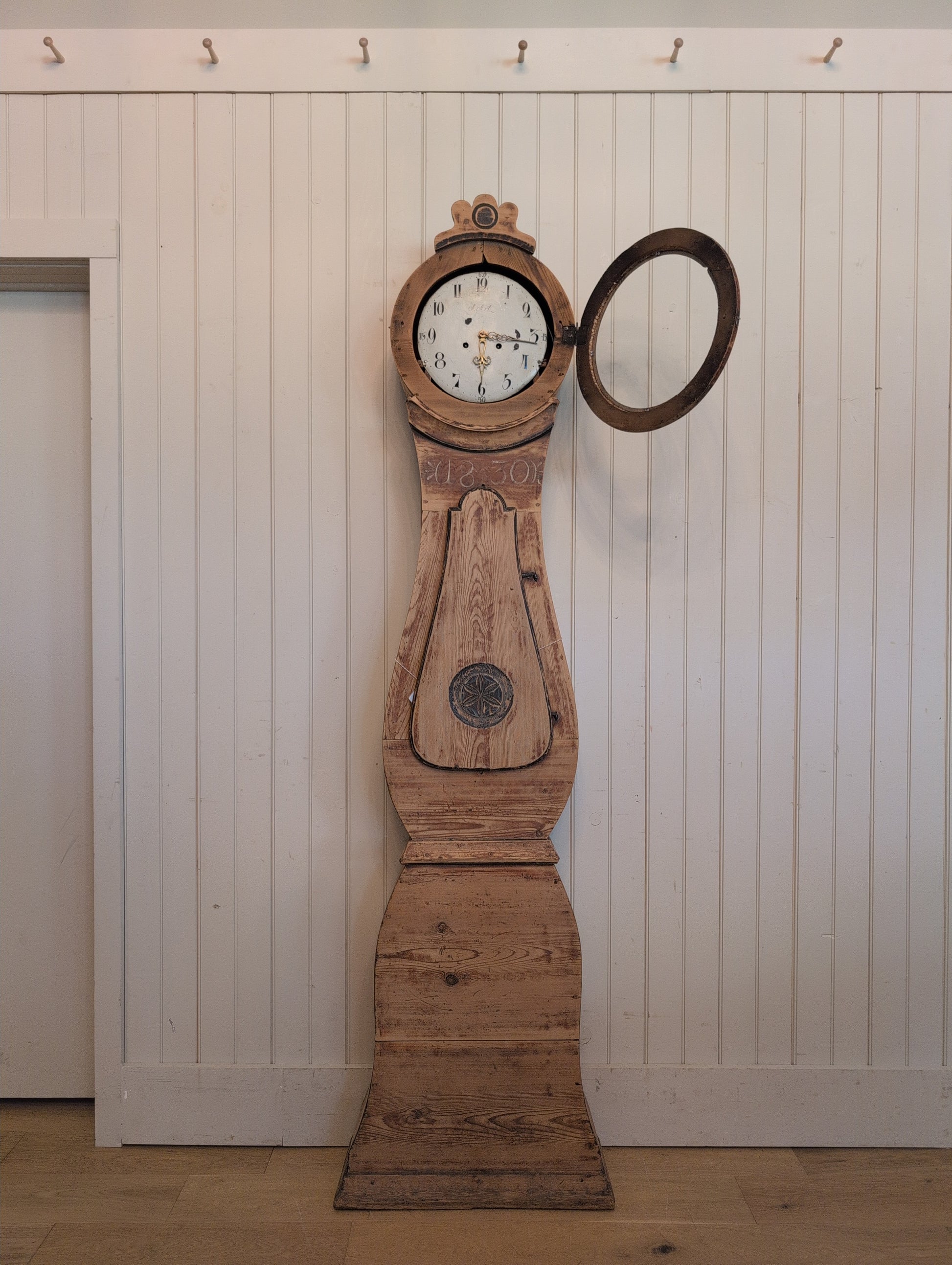 Tucked away in the heart of the Swedish midlands, the coastal city of Mora will forever be known for its creation of the Mora Clock. The magic of the Mora Clock lies in the unique craftsmanship and means of survival for the Swedish. Facing a severe drought in the 18th century, the people of Mora fled to the more populated town of Stockholm. During this move, the people of Mora learned the craft of clock making. Each family specialized in a key component of the production of the Clock. From the delicate painting of the face, the rigorous carving of the body, to the intricacy of the internal component assembly, it is fair to say the finished Mora Clock is one of a kind and built from a labor of love. The locals began the tradition of gathering their family around the clock each Sunday morning for the required weekly winding for the week ahead. The Mora Clock was a celebrated symbol of specialized craftsmanship within each family, and often gifted during traditional Swedish weddings. Painted Mora Clocks will have the date of the wedding gift on the upper body; the actual production of the clock, would have dated to much, much, earlier. Craftsman of the mechanical components would often paint their initials on the clock face as a way to show the pride of their work. Due to the limited availability of glass in Sweden at the time, a limited set of clocks produced had a glass viewing window on the lower body.