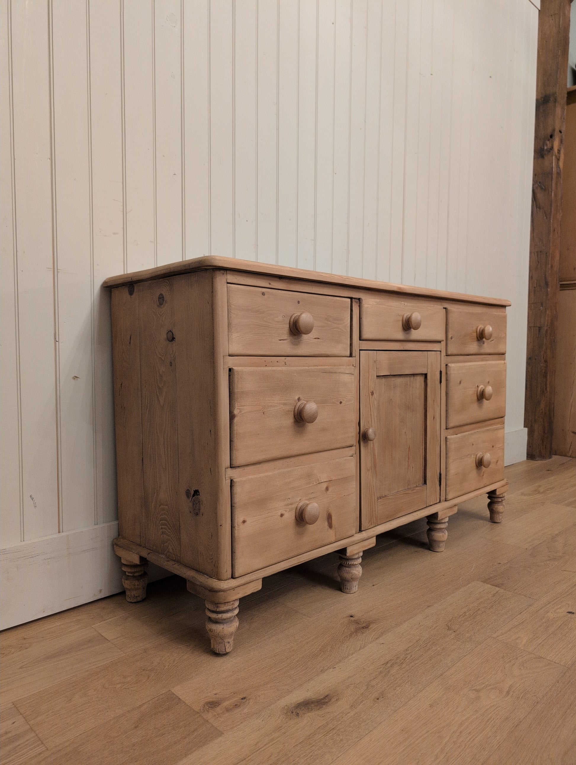 At 4.5 feet wide, this sideboard is ideal for smaller areas in need of storage. We love the traditional tulip feet and wooden knob hardware. This piece is fully waxed in a neutral light brown.